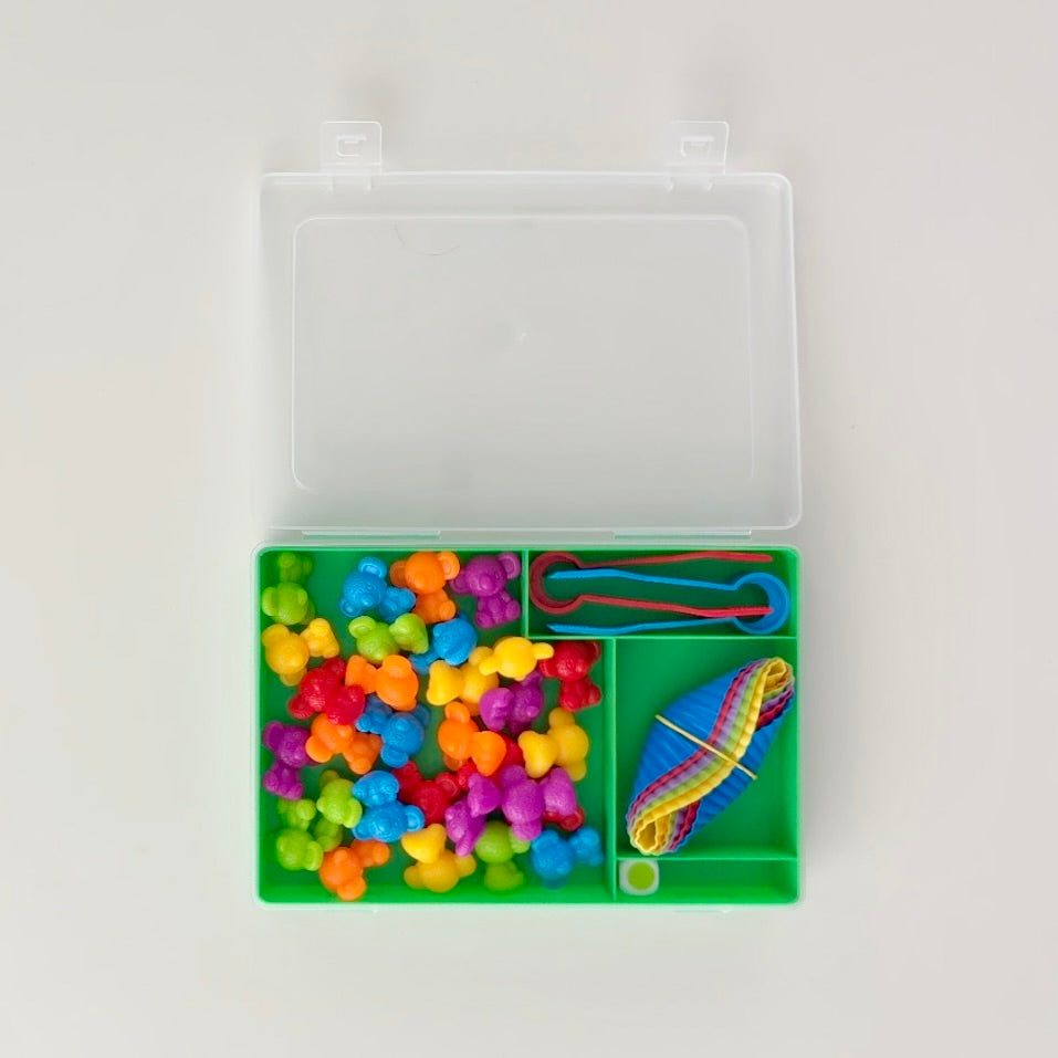 With tools like a colour dice, tongs, and silicone tubs, it helps build early numeracy, fine motor skills, and colour recognition through joyful, open-ended play.